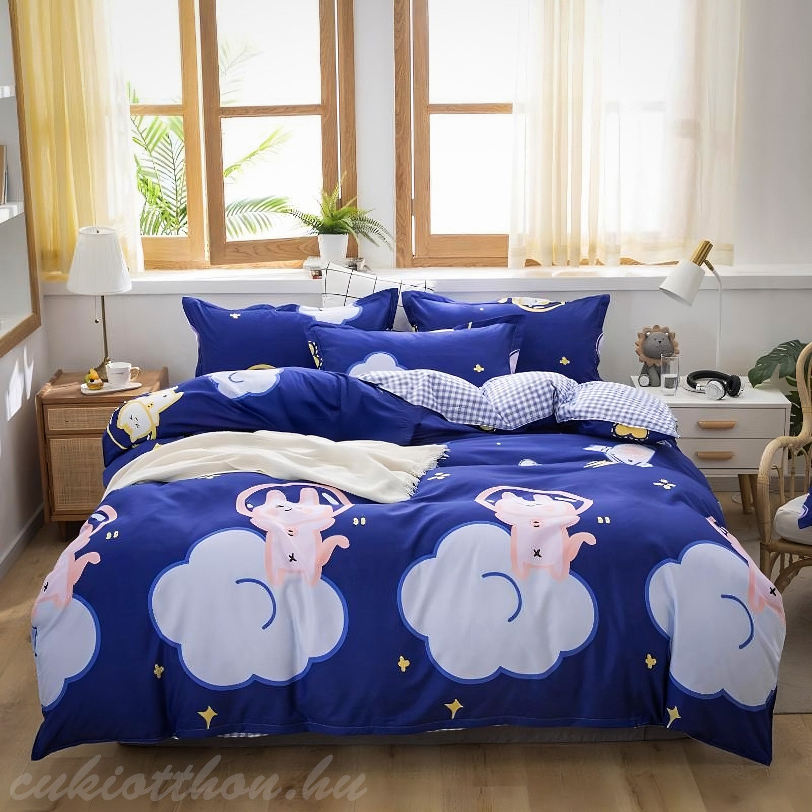 Das Bettwäscheset „Cloud Dream“ lädt Sie zu einer magischen Nachtreise ein! Die weichen Wolken auf tiefblauem Hintergrund und die niedlichen Figuren schaffen zusammen eine traumhafte, beruhigende Atmosphäre. Die winzigen Sterne und der lächelnde Mond erhellen das Muster dezent, während die liebevollen Motive auf den Wolken Freude in Ihr Schlafzimmer bringen. Eine perfekte Wahl für alle, die charmantes, aber dennoch klares Design lieben und sich eine entspannende, märchenhafte Atmosphäre wünschen. ☁️🌟🌙